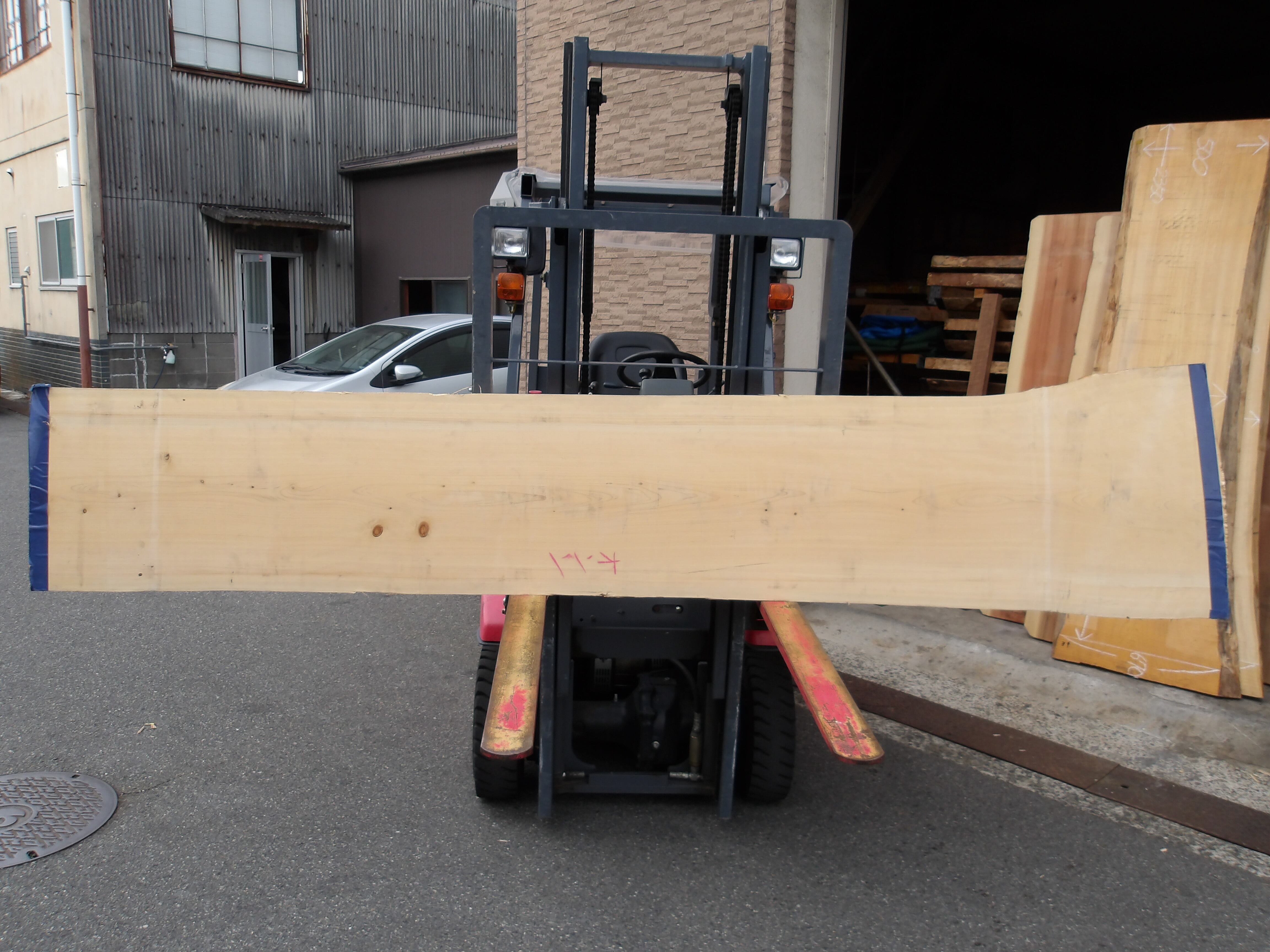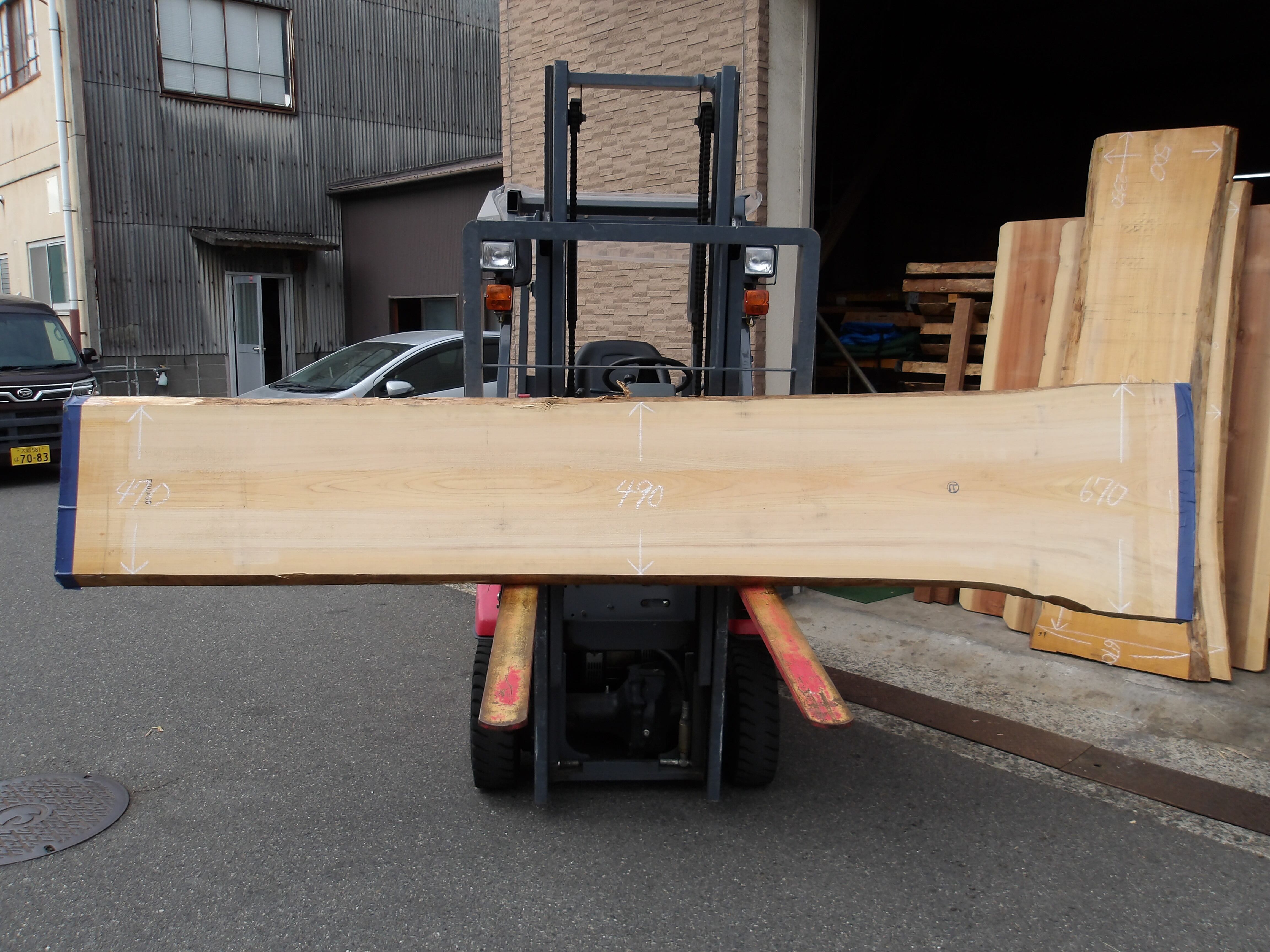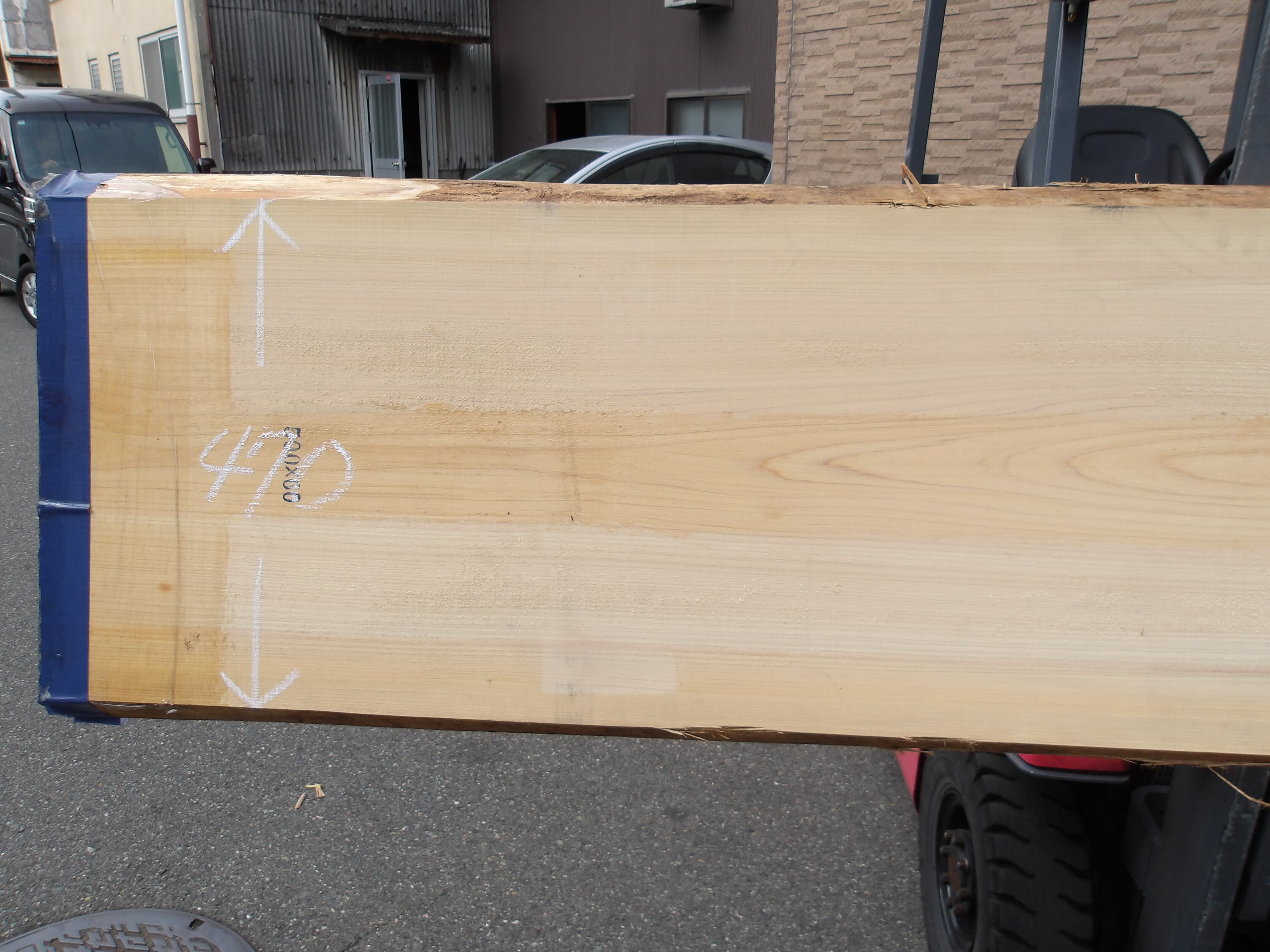 桧・ヒノキ(OMT-463)総丈3190㎜x幅470㎜~670㎜x厚65㎜